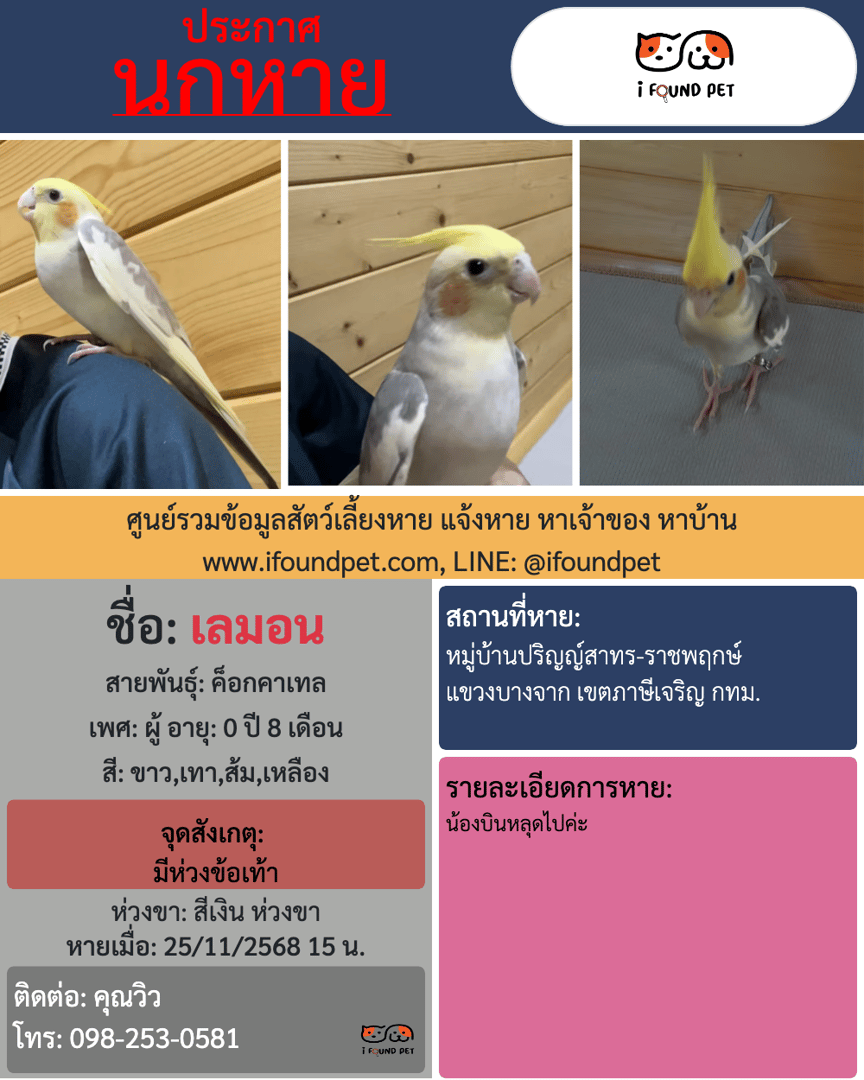 ช่วยกันกดแชร์เพื่อเป็นอีกหนึ่งช่องทางในการตามหาเลมอน
