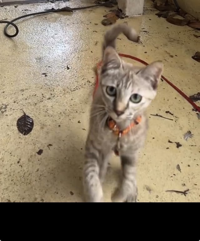 เรียกชื่อเบาๆน้องจะเดินมาหา ชื่อ มิวกี้ ลายเสือสีอ่อน ตัวผอม ตัวเล็กไม่ใหญ่ แกนๆ ขี้กลัว ตาสีอ่อน นิสัยขี้กลัว