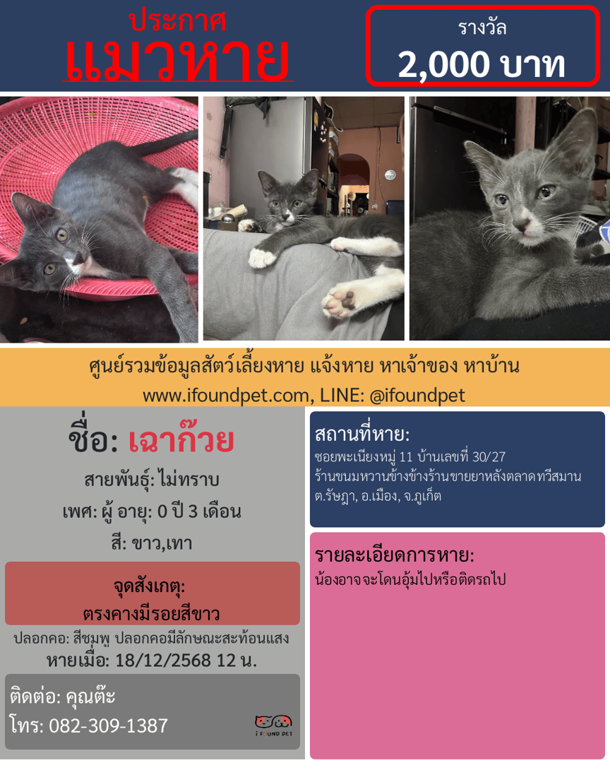 ช่วยกันกดแชร์เพื่อเป็นอีกหนึ่งช่องทางในการตามหาเฉาก๊วย
