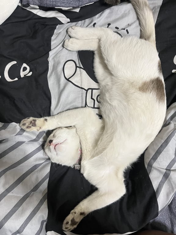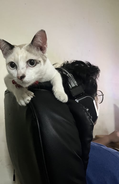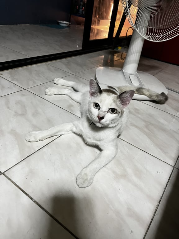 อายุประมาณ8-9เดือน ปลายจมูกแต้มดำ หูข้างขวาดำ1ข้าง นิสัยขี้เล่น ไม่กลัวคน