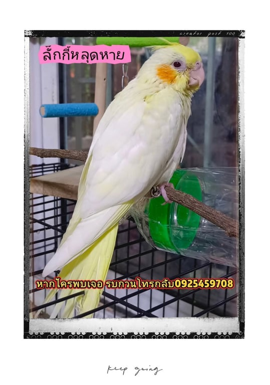 ค็อกคาเทล สีเหลือง มีห่วงที่ขา