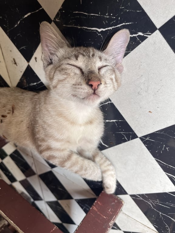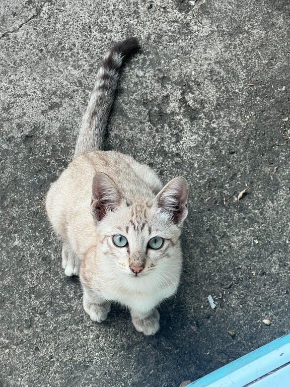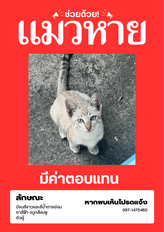 ตาสีฟ้า หน้าผากตัวM หางสีน้ำตาลอ่อน จมูกชมพู