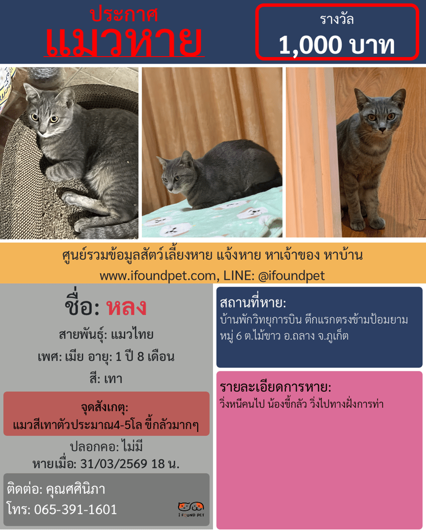 ช่วยกันกดแชร์เพื่อเป็นอีกหนึ่งช่องทางในการตามหาหลง