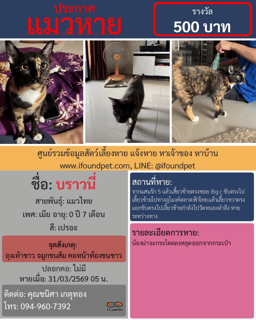 ช่วยกันกดแชร์เพื่อเป็นอีกหนึ่งช่องทางในการตามหาบราวนี่