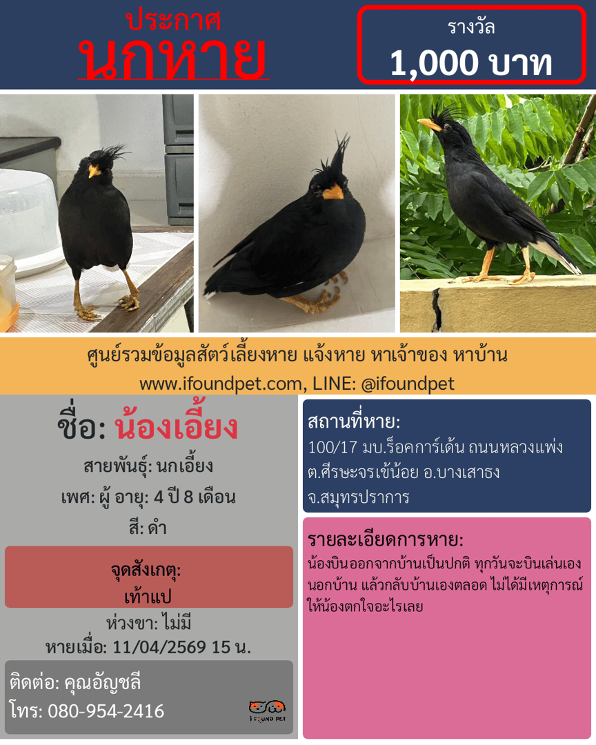 ช่วยกันกดแชร์เพื่อเป็นอีกหนึ่งช่องทางในการตามหาน้องเอี้ยง