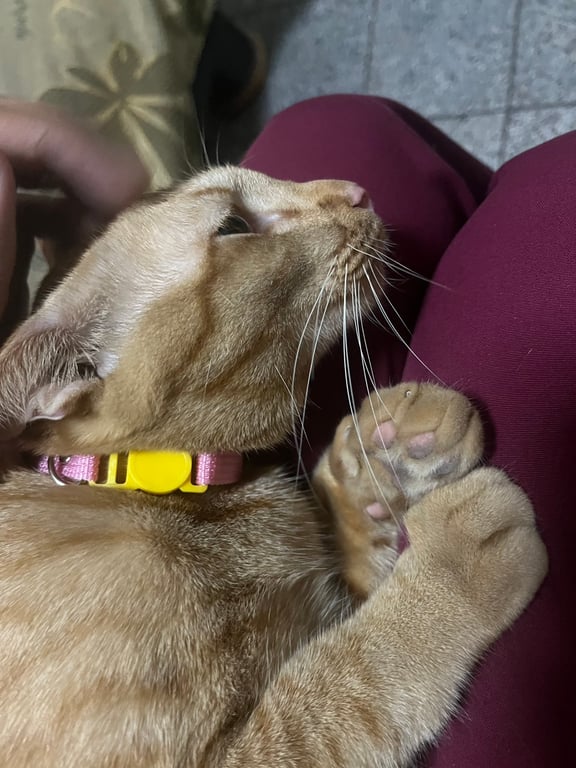ขาหลังกะเพลกเล็กน้อย 1 ข้าง ปลอกคอสีชมพู