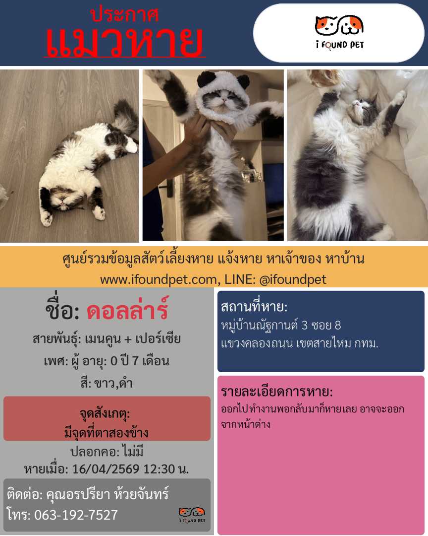 ช่วยกันกดแชร์เพื่อเป็นอีกหนึ่งช่องทางในการตามหาดอลล่าร์