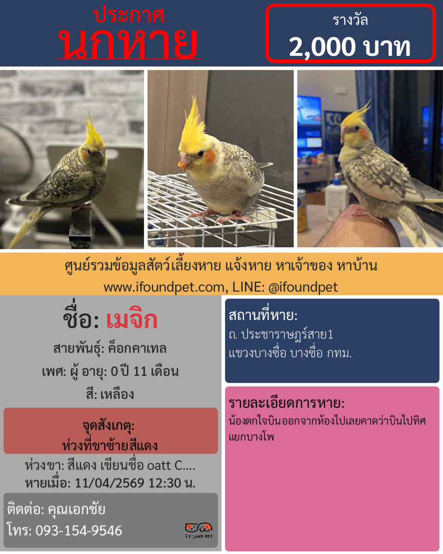 น้องตกใจบินออกจากห้องไปเลยคาดว่าบินไปทิศแยกบางโพ