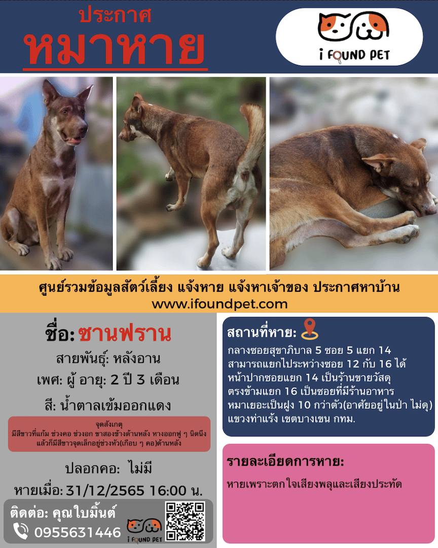 ช่วยกันกดแชร์เพื่อเป็นอีกหนึ่งช่องทางในการตามหาซานฟราน