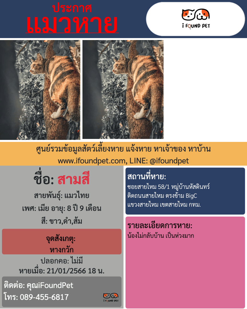 ช่วยกันกดแชร์เพื่อเป็นอีกหนึ่งช่องทางในการตามหาสามสี