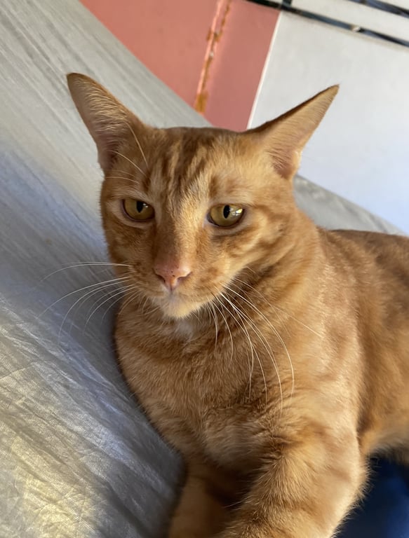 สีส้มเข้มทั้งตัว หน้ายาว ตัวยาว หางยาว ตัวหนา หนัก 6 กก.