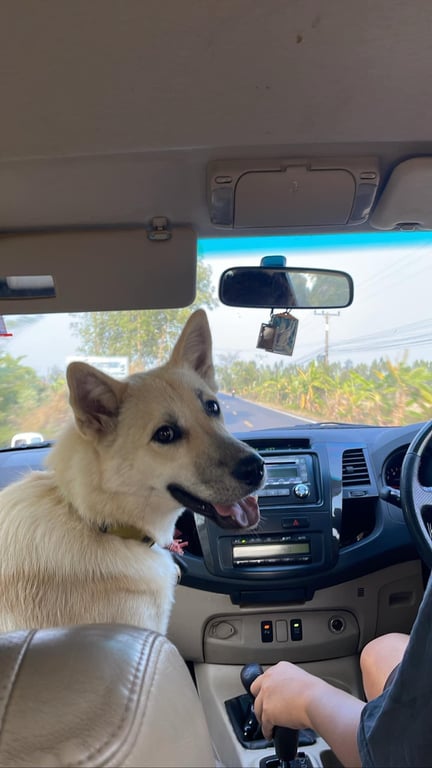 ใส่ปลอกคอสีเขียว น้ำเงิน เหลือง กระดิ่งลูกใหญ่ประมาณนึง ลิ้นมีสีดำปนเยอะหน่อย น้องเข้ากับคนง่ายไม่ค่อยเห่า เรียกชื่อก็หันขอมือ นั่ง รอ คอยได้ ขี้อ้อน แต่ถ้าตกใจอาจจะเตลิดได้