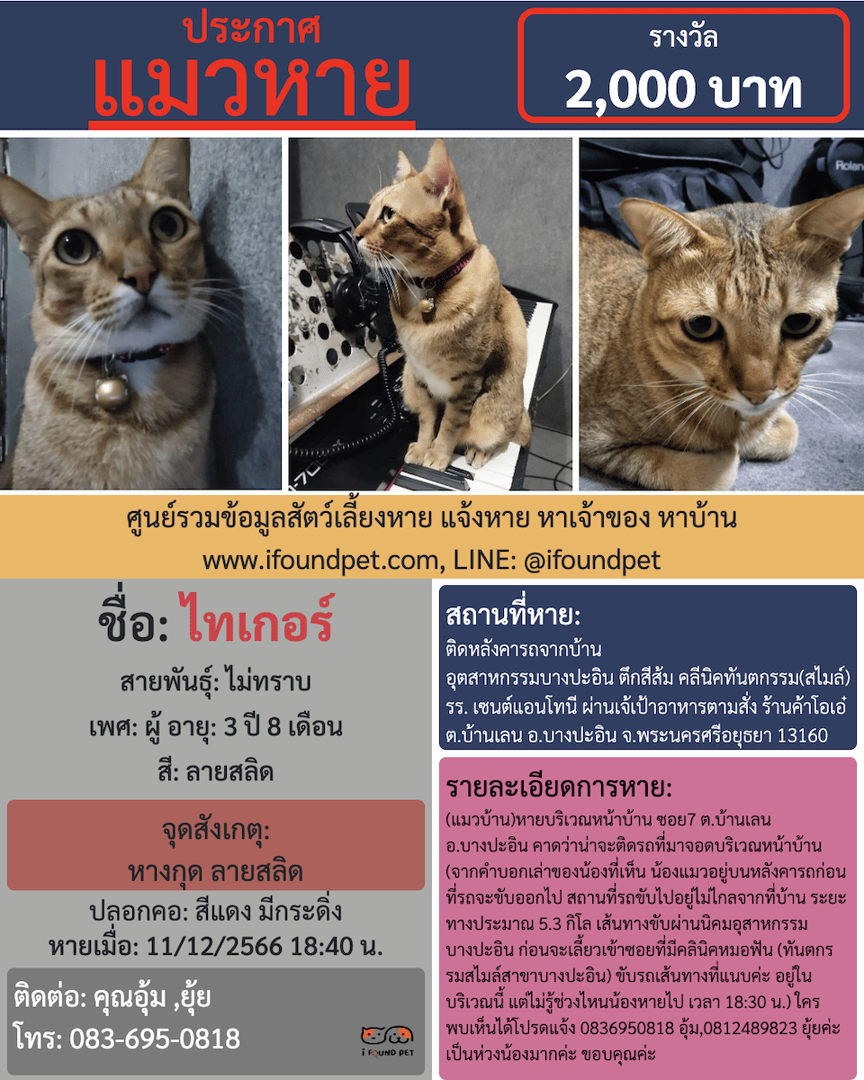 ช่วยกันกดแชร์เพื่อเป็นอีกหนึ่งช่องทางในการตามหาไทเกอร์