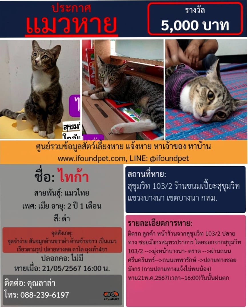 ช่วยกันกดแชร์เพื่อเป็นอีกหนึ่งช่องทางในการตามหาไทก้า
