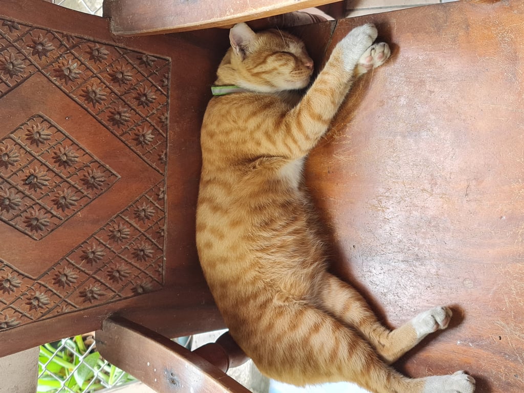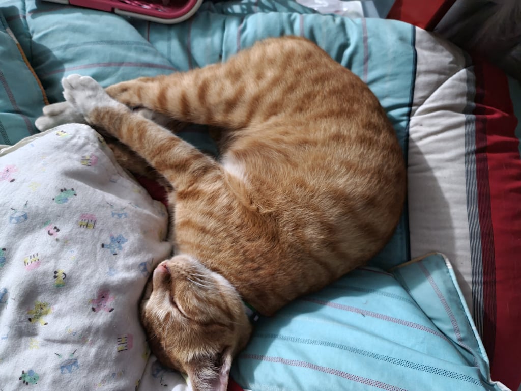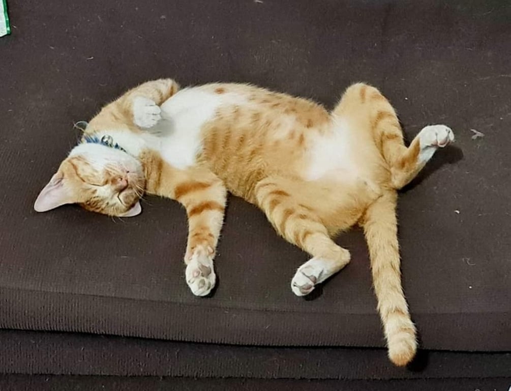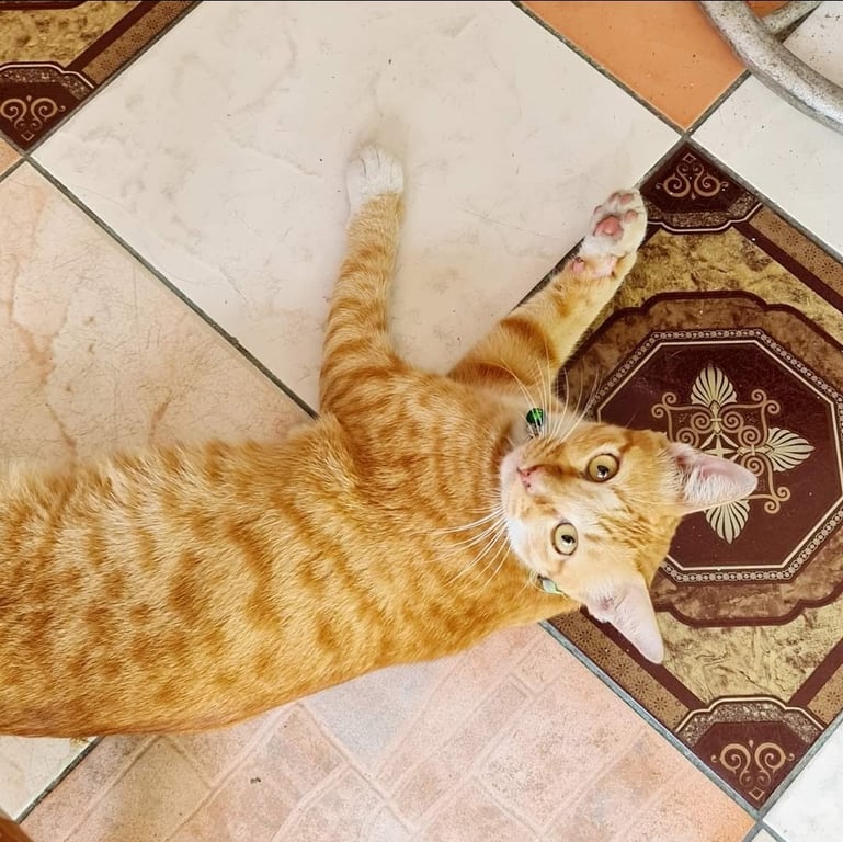 เป็นแมวสีส้มลายสลิด จมูกชมพู มีถุงเท้าสีขาวที่เท้าทั้ง 4 ข้าง พุงใหญ่ ตัวแน่น หางยาว มีสินน้ำใจให้ผู้ที่นำน้องมาคืน 2,000 บาท