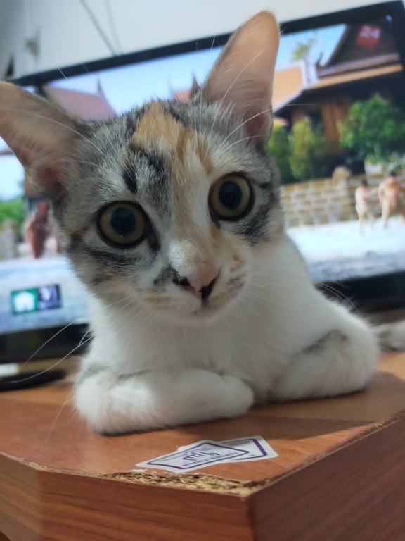 หน้าผากเป็นรูปตัวM ข้างจมูกขวามีจุดดำคล้ายไฝ หางขอดตรงปลายหาง