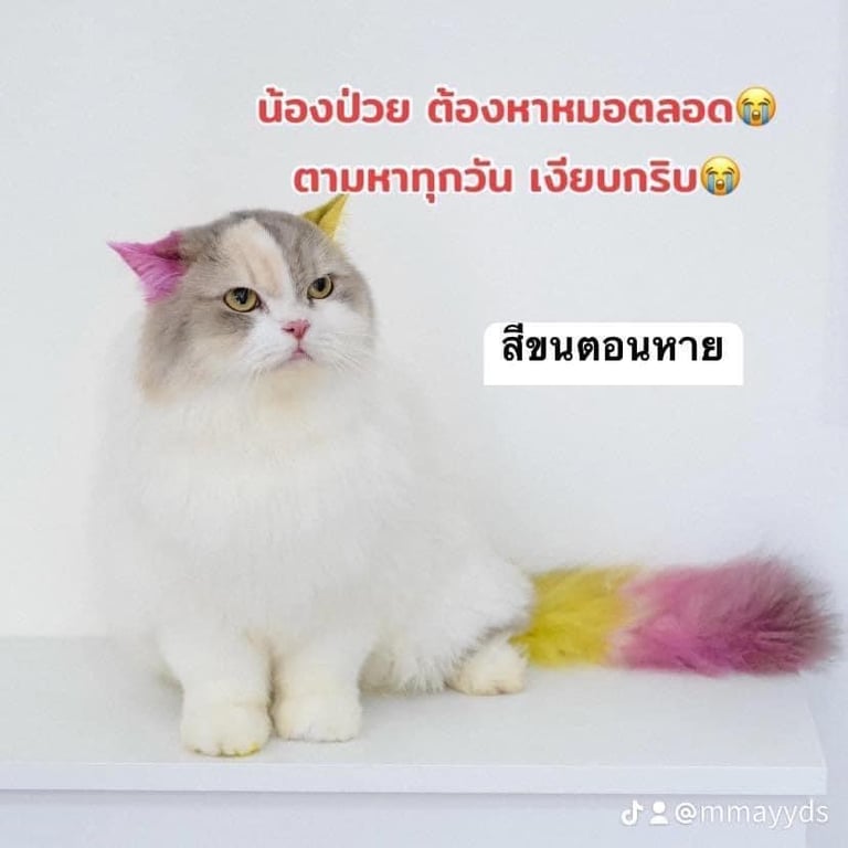 น้องหายตอนย้อมสีขน หูและหางชมพูเหลือง