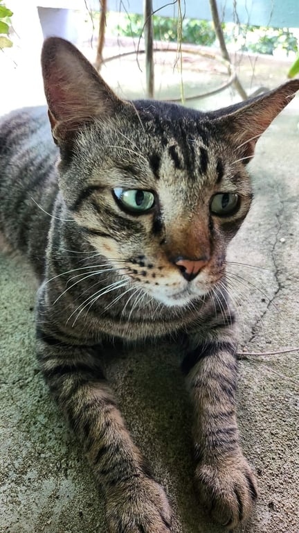 ไม่ค่อยเข้าหาคน. ตาขวางๆ ลายสลิดดำทั้งตัว ไม่มีสีอื่นปน