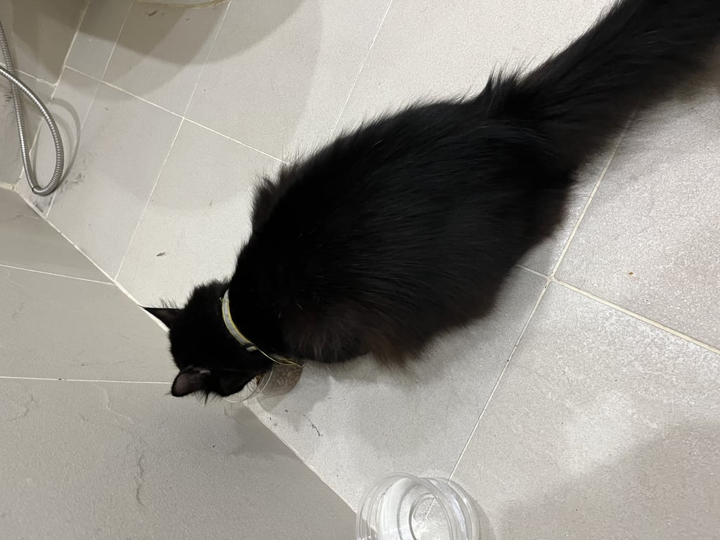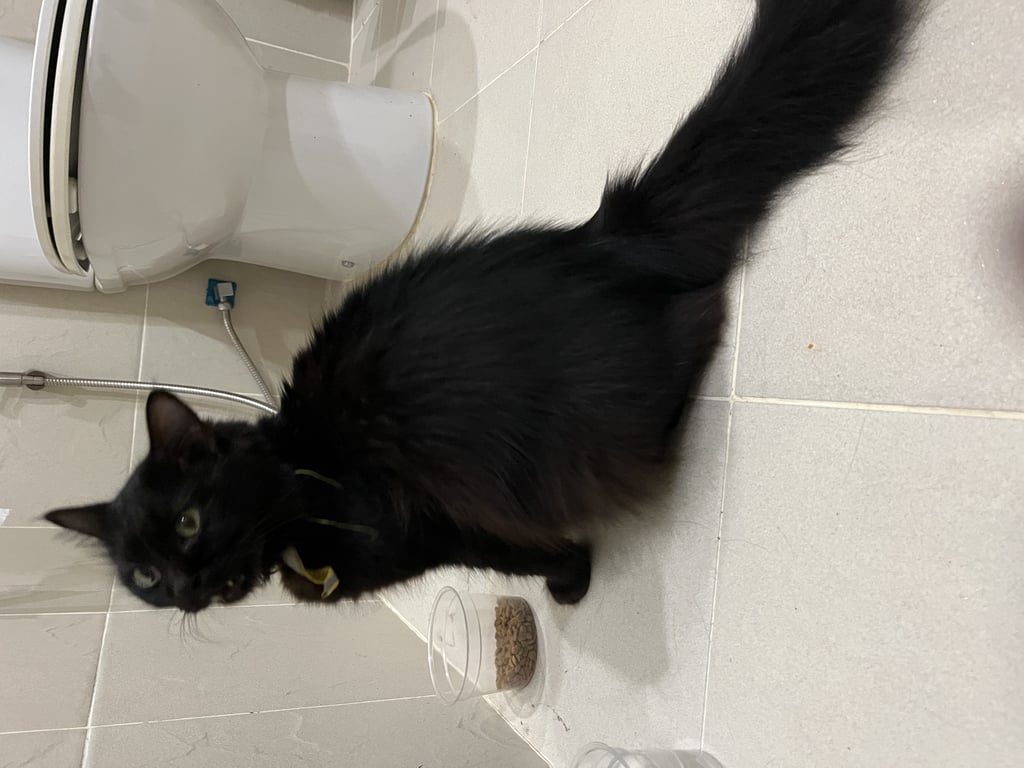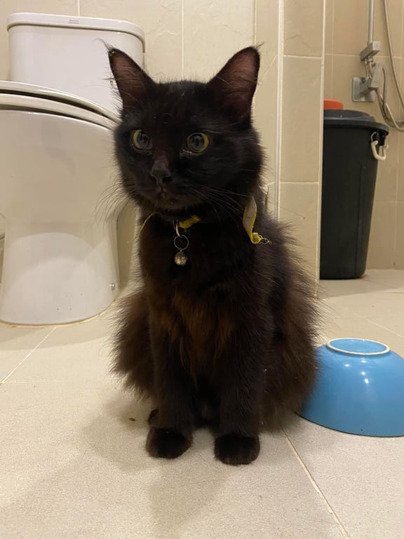 แมวดำ เพศเมีย ขนหูยาว นิ่ม ตาสีเหลือง ขนาดประมาณ 2-3 กิโล