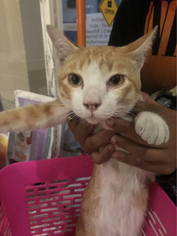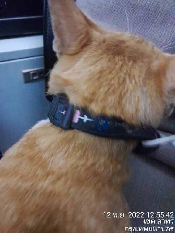 แมวส้ม แต่หน้าขาว ท้องขาว หางยาว มีปลอกคอสีดำ