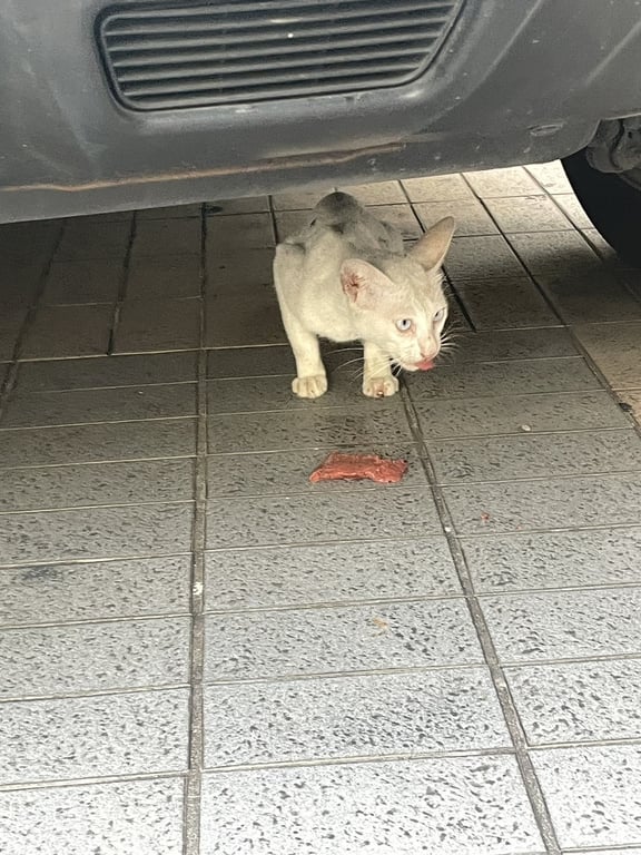 แมวขาวมณี เพศผู้ ตาสีฟ้า ลักษณะ ขาขาด1ท่อน แผลเริ่มแห้ง หลังมีรู ไม่มีปลอกคอ ไม่แน่ใจว่ามีเจ้าของไหม ลักษณะ ค่อนข้างหวาดกลัวคน แต่ก็เป็นมิตร พบเจอบริเวณหน้า7-11 สาขาแถวๆสรรพากร สุทธิสารค่ะ