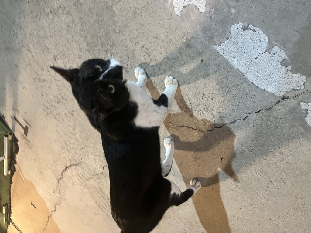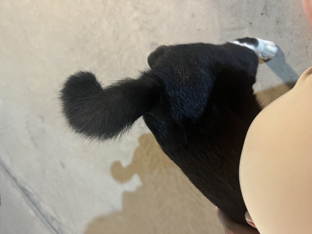 หางงอ ยังไม่ทำหมัน ขนดูฟูๆ ดูหายมานานแล้ว ขนดูเปรอะแต่ค่อนข้างนิ่ม นิ่มเหมือนมีคนเคยดูแล ตามตัวมีแผลกับรอยเปื้อนบ้างค่ะ