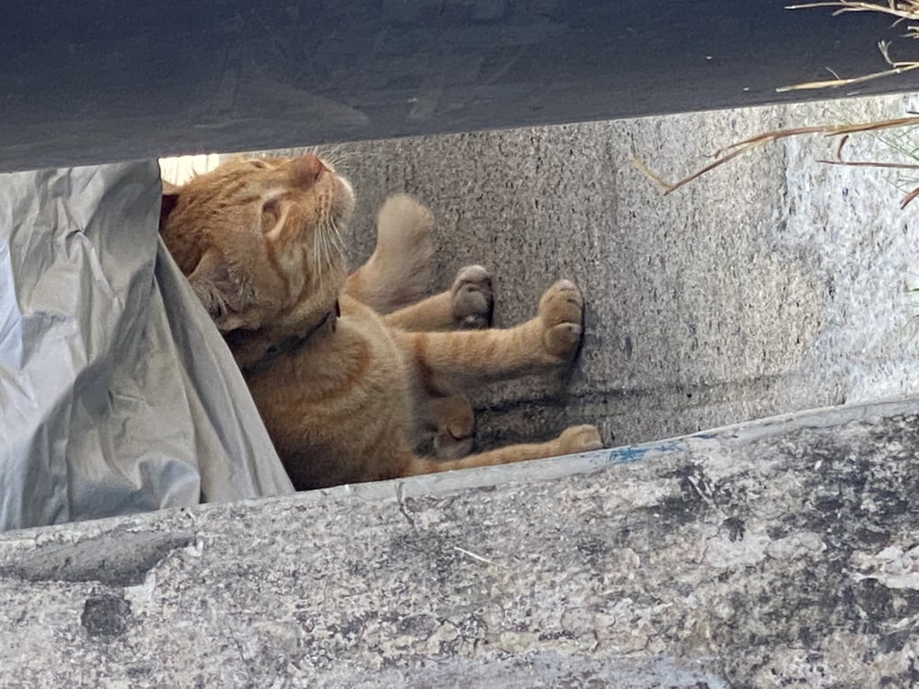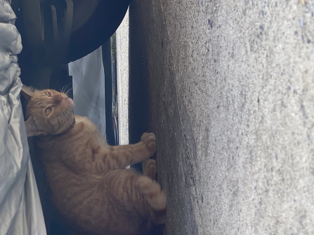 แมวส้มตัวผู้มีสีขาวช่วงคอและท้องยังไม่ได้ทำหมัน