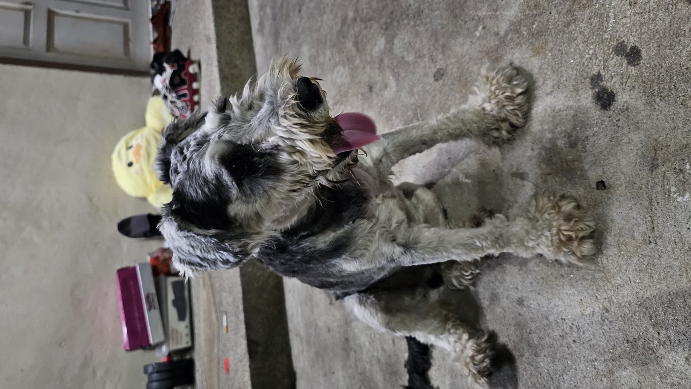 หมาพันธุ์ ชเนาเซอร์ ให้ทานน้ำ อาหารแล้ว