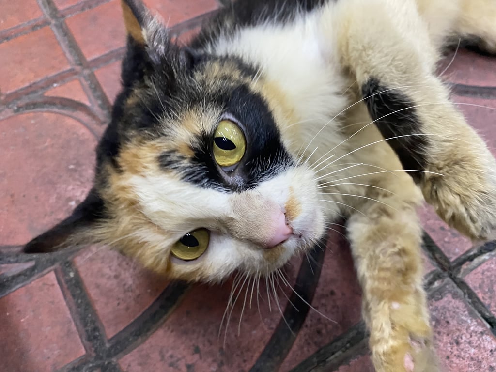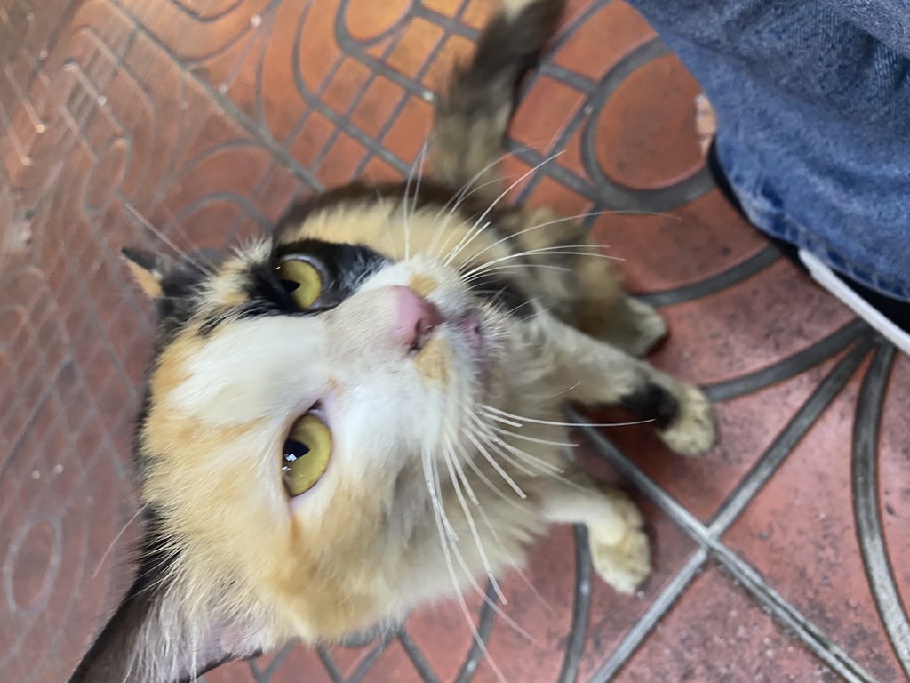 แมวสามสี เปอรร์เซีย เพศเมีย อายุไม่เกิน 4 ปี ตัวผอมและเลอะ เข้ากับคนง่ายขี้อ้อน ตาสีดำเหลือง อุ้งเท้าและสมูกสีชมพู ร้องเสียเบา
