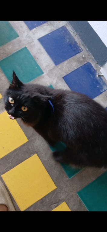 สีดำมีปลอกคอสีฟ้า ขนสวย
