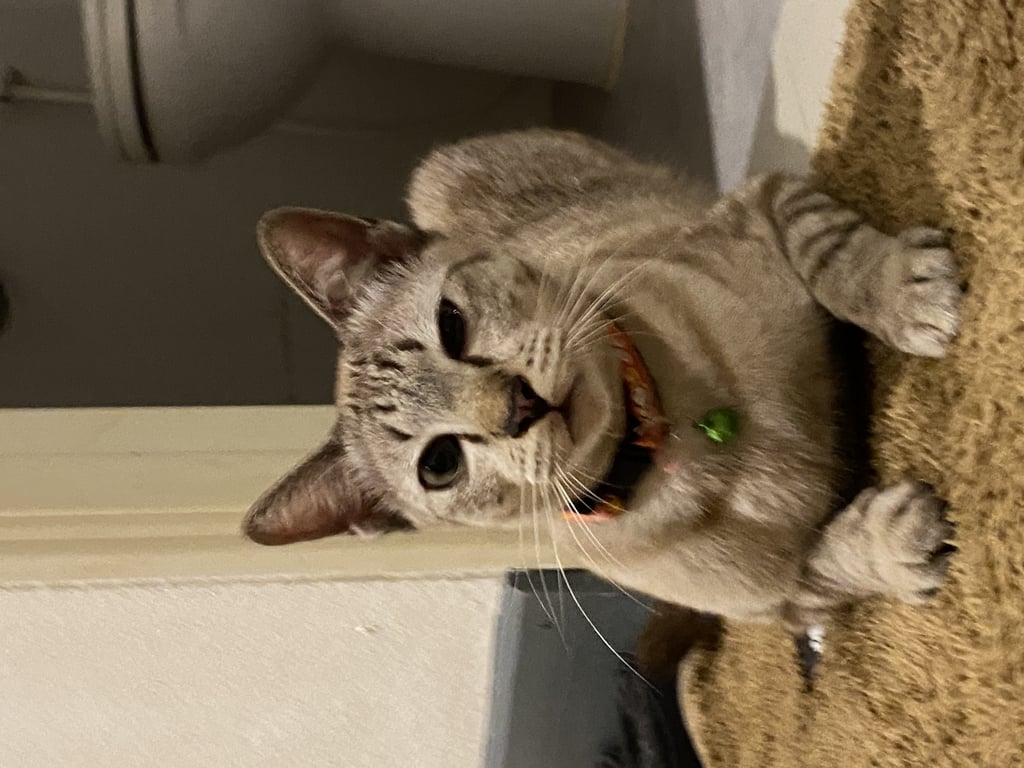 น้องขี้อ้อน ติดคนมาก ไม่กลัวคน แต่กลัวเสียงรถ กลัวหมา น้องเนื้อตัวสะอาด จากที่สังเกตน้องน่าจะอายุไม่เกิน 10 เดือนค่ะ ลักษณะลำตัวน้องผอมเพรียว ไม่อ้วน หางยาวตรง