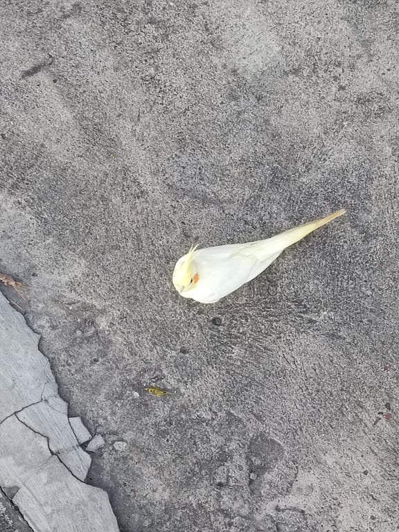 นกสีขาว(ไม่ทราบสายพันธุ์) ลายสีเหลืองที่หัวและหาง มีจุดสีส้มที่บริเวณคอด้านข้าง
