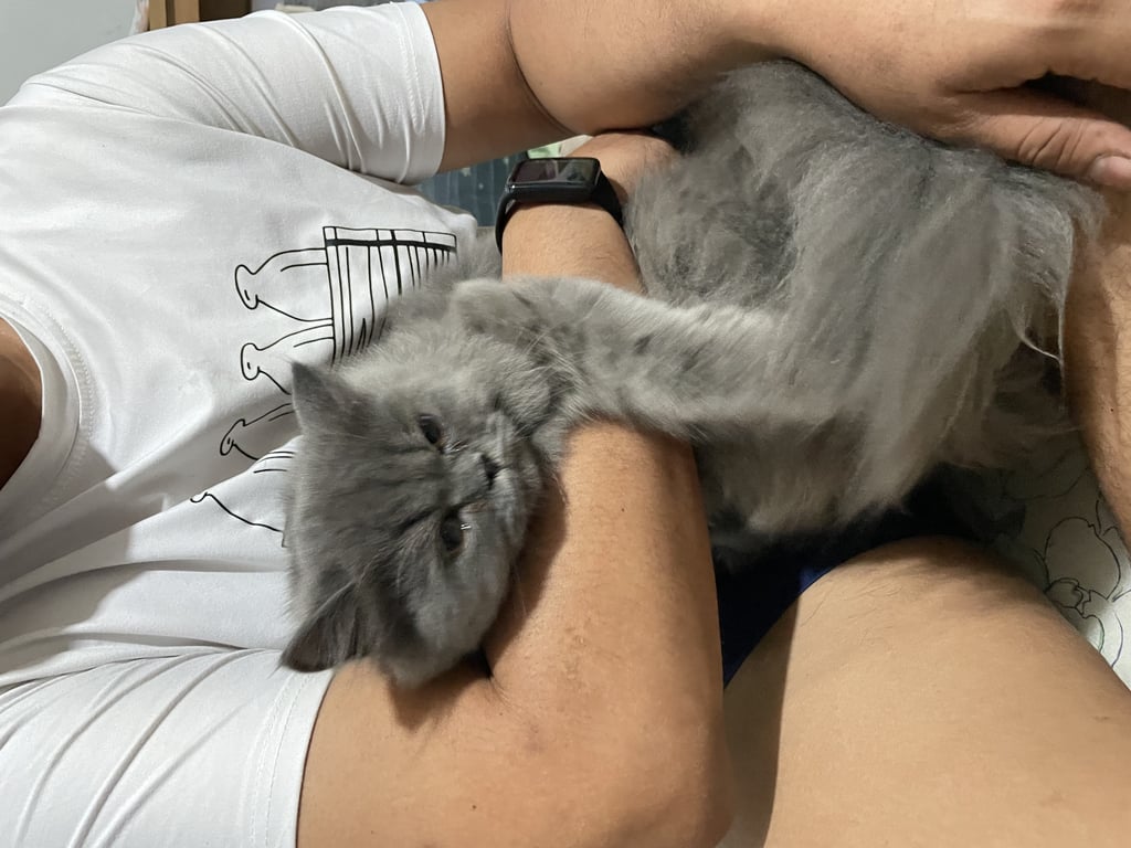 น้องเพศผู้ สีเทา ขนนิ่มฟู ขี้อ้อน น้องน่าจะเป็นแมวเด็ก