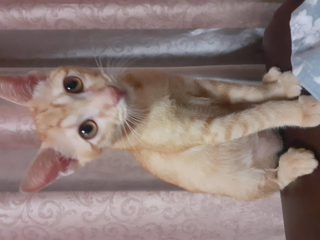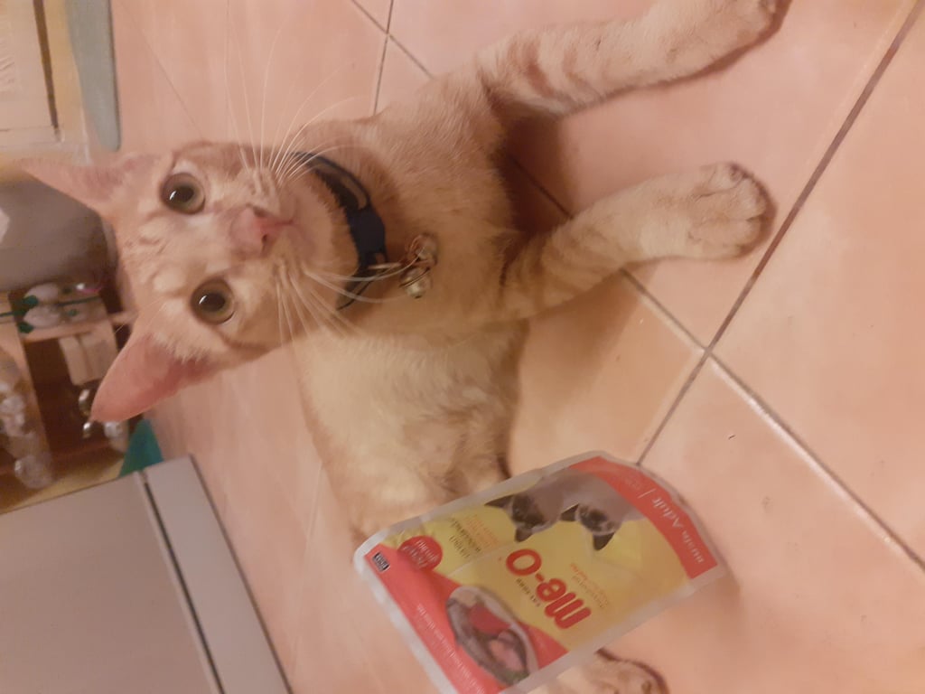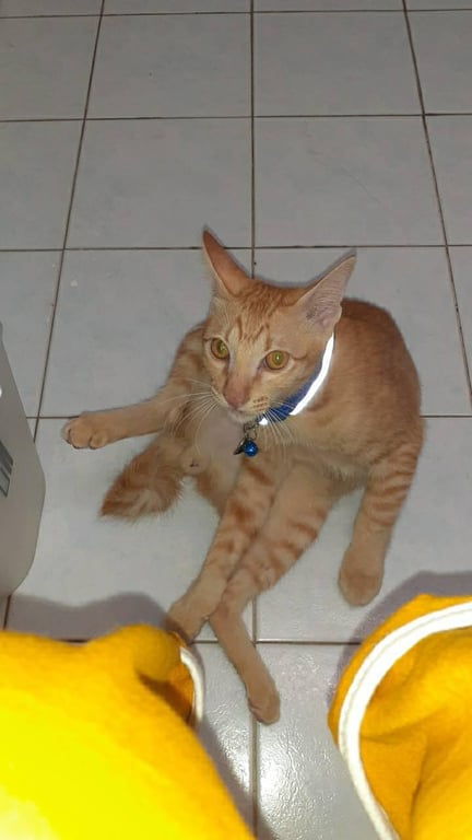 น้องชื่อชาเย็น รู้จักชื่อตัวเอง อายุ 8 เดือนกว่า หน้าแหลมๆ ตัวสีส้มไม่มีขาวปน หุ่นยังไม่โตเต็มที่ ใส่ปลอกคอสีเขียวเข้มมีกระดิ่ง ไม่รู้ตอนนี้กระดิ่งหลุดไปหรือยัง ปลอกคอมีรูปโบว์หูกระต่ายสังเกตง่าย ค่อนข้างตื่นคน ขี้กลัวหน่อยๆ
