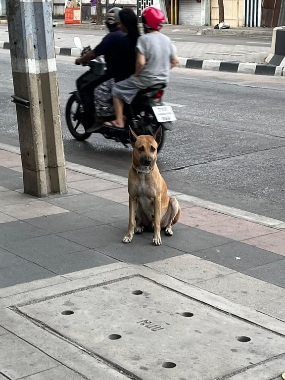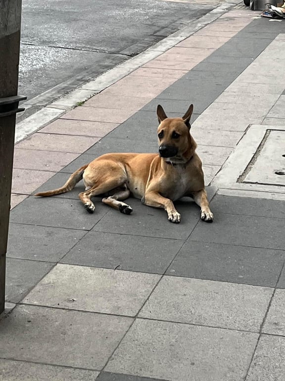 น้องหมาสีนำ้ตาลแดง เพศผู้ ปลอกคอสีม่วง มาอยู่แถวนี้ 2-3 วันแล้ว มีหมาเจ้าถิ่นอยู่ รถเยอะ เจ้าของติดต่อกลับโดยด่วน