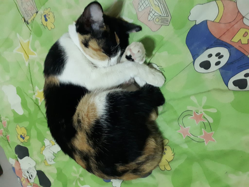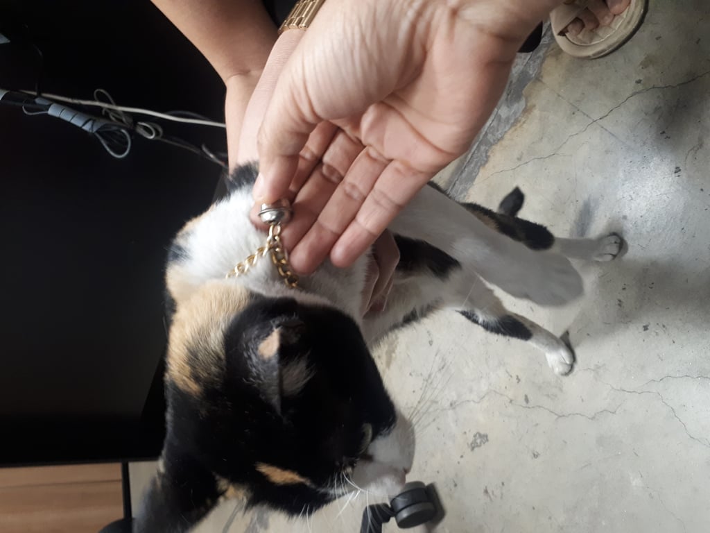 เป็นแมวขี้อ้อน และมีสามสี ขาว ดำ ส้ม ที่หน้าฝากมีแต้มสีส้ม ขาวทั้งสีสีขาว ตัวสีดำกับส้มคละกัน น้องน่าจะท้องสาว พอดีน้องติดรถของลูกค้าเข้ามาที่ศูนย์ เบนซ์Bkkกาญจนาภิเษกบางแคติดสำนักงานเขตบางแค เลยดูแลน้องไว้ก่อน บ้านของลูกค้าอยู่ มบ.ลดาวัลพระราม2