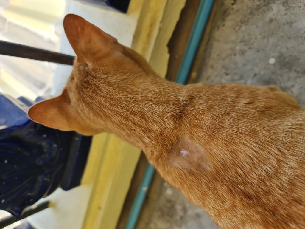 หางม้วน หลังคอมีแผล อ้วน ยังไม่ทำหมัน ขี้อ้อนมาก
