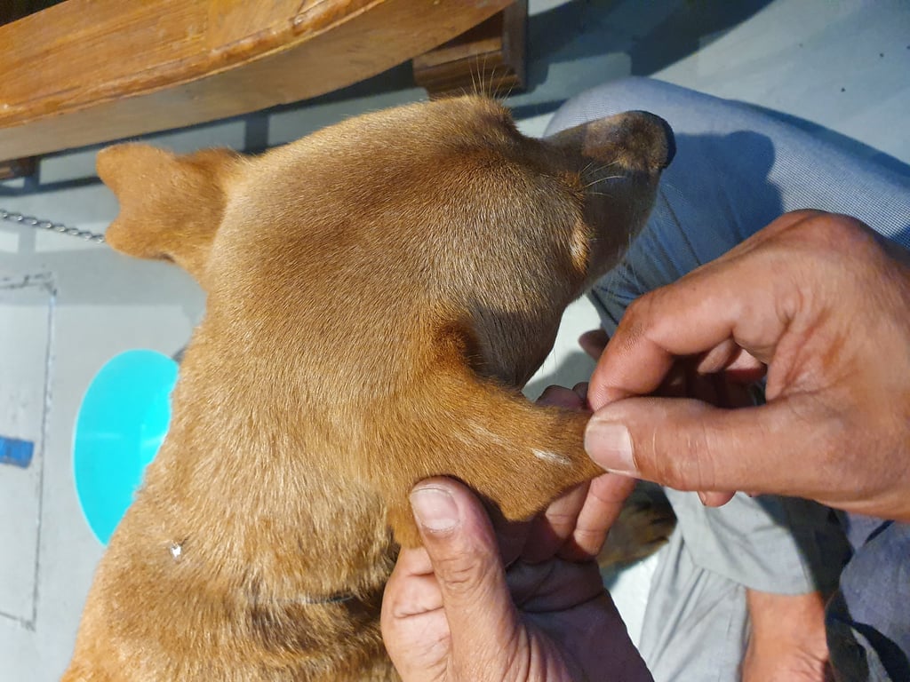 หางงอม้วนขึ้น หูขวามีเส้นขนสีขาวๆแซม พบบริเวณหน้าสถานีรถไฟหัวลำโพง
