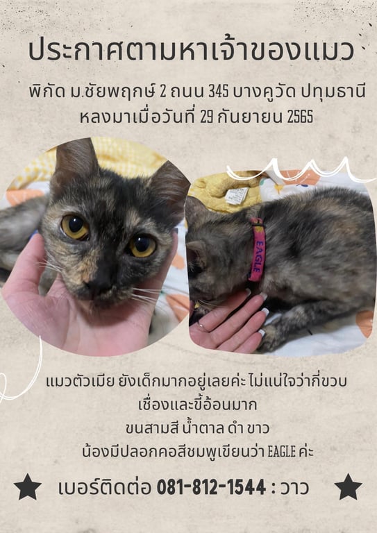 ปลอกคอสีชมพู เขียนว่า eagle