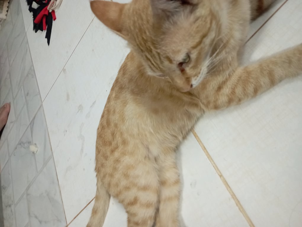 ไม่กลัวคน ค่อนข้างเชื่อง เสียงร้องแอ๊ะแอ๊ว มาอยู่ให้แมวที่บ้านตบได้หลายวันแล้ว ไม่แน่ใจว่าโดนทำหมันหรือไข่เล็ก