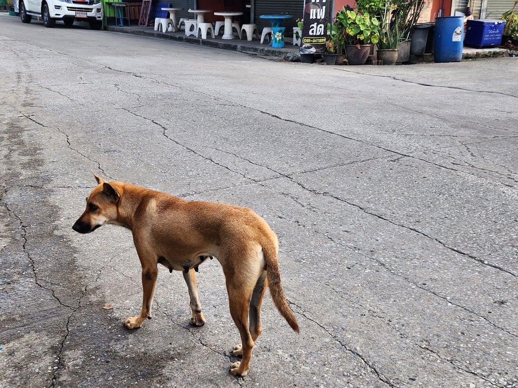 หมาใคร หลงมารึเปล่าคะ ดูหิวมากล่ะดูขรี้กลัว ป้าร้านขายหมูปิ้งบอกว่า น่าจะมาตั้งแต่วันลอยกระทง น้องอยู่ พฤกษา 12 รังสิตคลอง3 ซอยตลาดนะคะ #หมาหายคลอง3