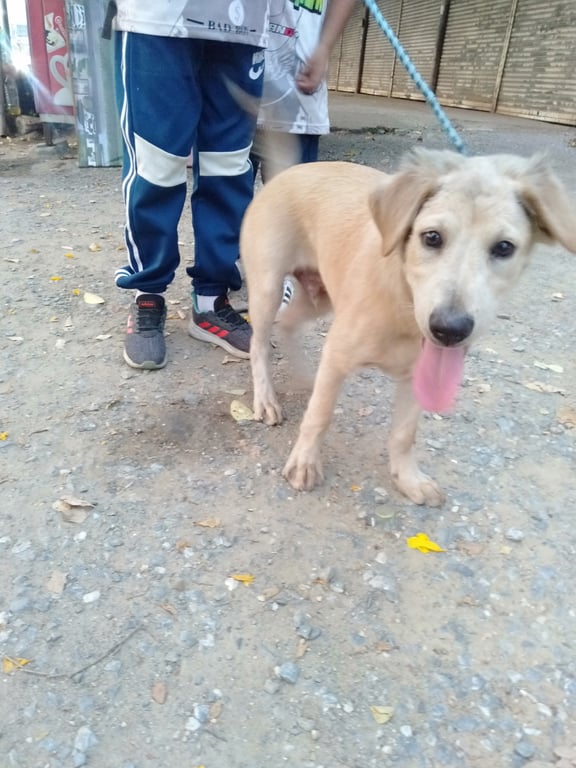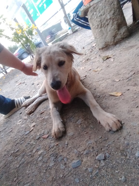 สีครีมล้วนทั้งตัว ไม่กลัวคน เป็นหมาซน