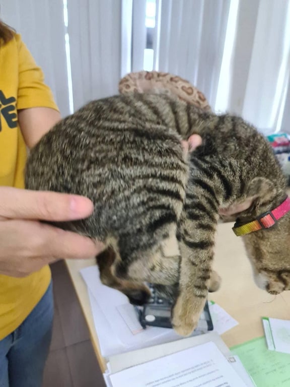 ลายสลิดค่ะ น้องตัวเล็กนะคะ มีปอกคอติดมากับน้องด้วย ขี้อ้อน น่ารัก หลงมาแถวพระรามเก้า ซอย 53 ตอนนี้อยู่ในซอย 53 นะคะ