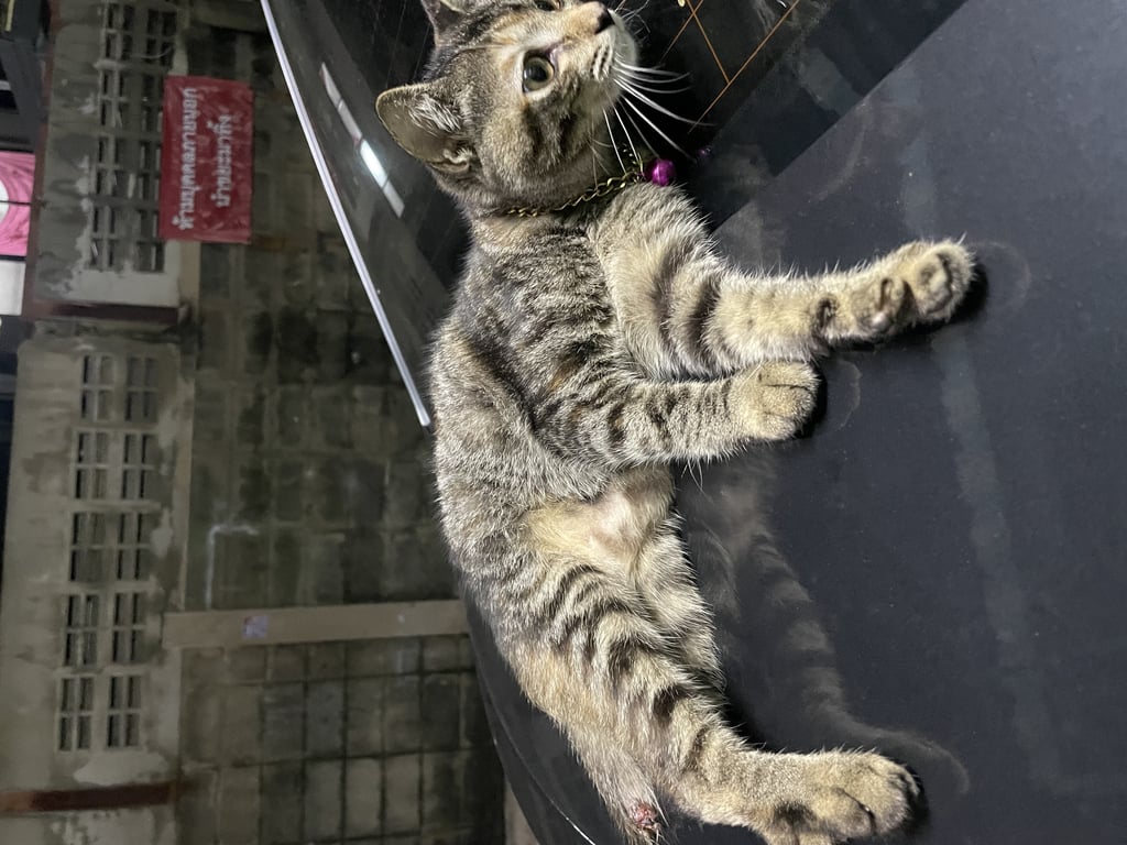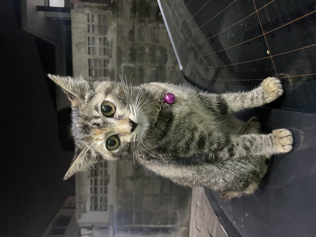 ลายสลิด ขน ฟู นุ่ม มีปลอกคอ กระดิ่งสีม่วง
