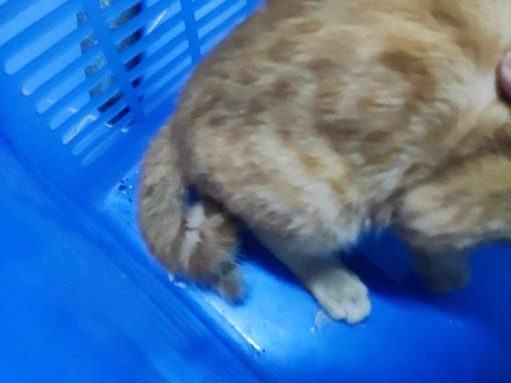 แมวใครหายมารับคืนได้ครับ เจอมุดออกมาจากใต้ท้องรถวิ่งอยุ่บนถนนหน้าโลตัสลำลูกกาคลอง2 สีส้ม ตัวผู้ หางกวัก มีปลอกคอครับ