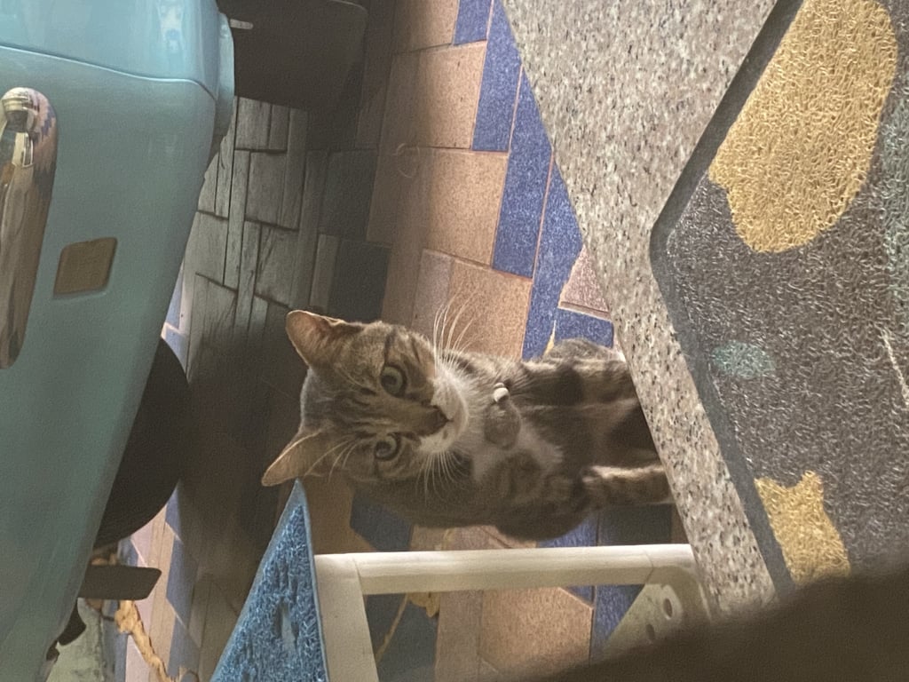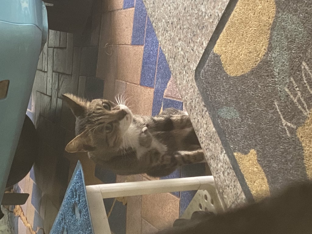 หางขอด มีปลอกคอข้างหน้าเป็นตุ๊กตานิ่มๆน่าจะสีเทา