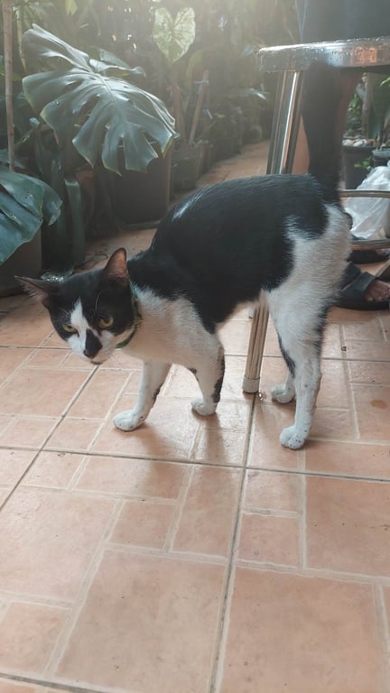 น้องมีจุดเด่นคือมีจุดดำที่จมูก หางสีดำไม่ยาวสุด ปลายคด ยังไม่ทำหมัน ไข่สีดำ