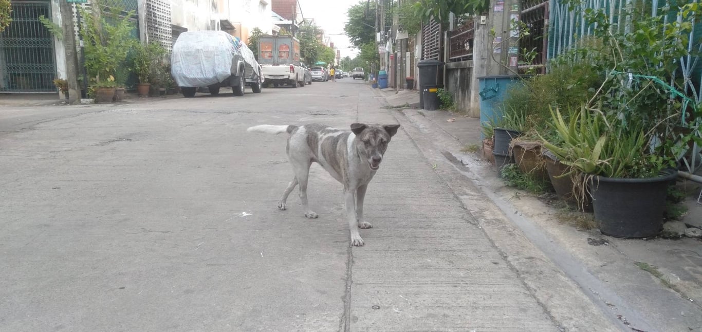 เจอเมื่อประมาณช่วงหลังสงกรานต์ตอนนี้น้องอยู่ที่ซอยลาดปลาเค้า 60 ช่วงซอยย่อยแยกที่สามถึงสี่ค่ะ