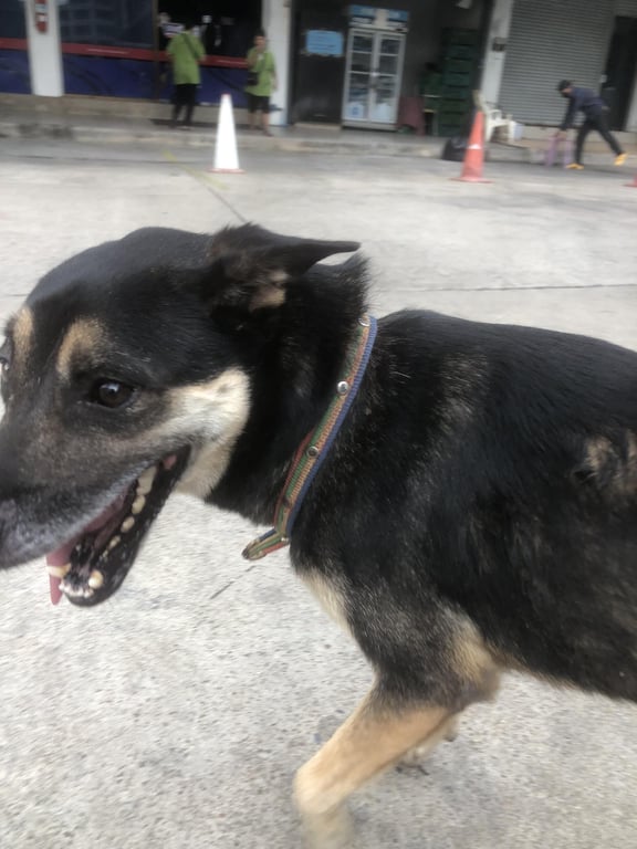น้องหลงมาอยู่แถวศาลเจ้าพ่อสมบุญ ตลาดใหม่ดอนเมือง ตอนนี้น้องตามไปอยู่ที่บ้านแล้วค่ะ น้องยังรอเจ้าของอยู่นะคะ