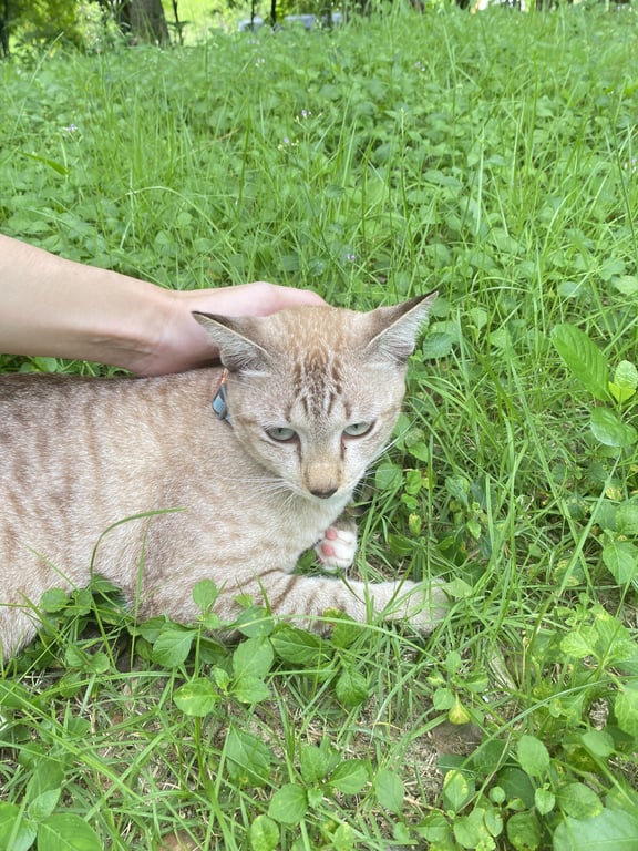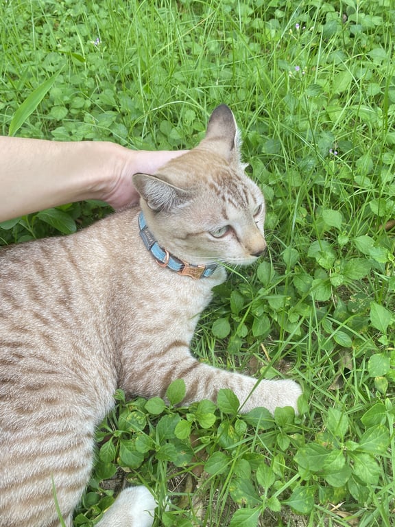 สลิดน้ำตาล เพศเมีย หางยาวตรง ปลอกคอสีฟ้ายี่ห้อROGZ(ตอนเจอไม่มีกระดิ่ง) น้องเชื่องกับคน ให้อุ้มได้ ขู่แต่ไม่เปิดเล็บ ไม่กัด อายุน่าจะประมาณ 1-2 ปี ไม่เกิน 3 ปี ไม่แน่ใจว่าเลี้ยงเปิดหรือน้องหลงจากเจ้าของ เราจับแมวไว้ก่อนกลัวน้องเกิดอันตราย